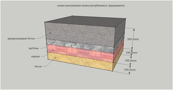 Dans une telle situation, au stade de la conception, il est très important de calculer correctement le poids de la future structure. Si le poids corporel ne dépasse pas 0,8 t, vous pouvez vous arrêter à la coulée de béton peu profonde