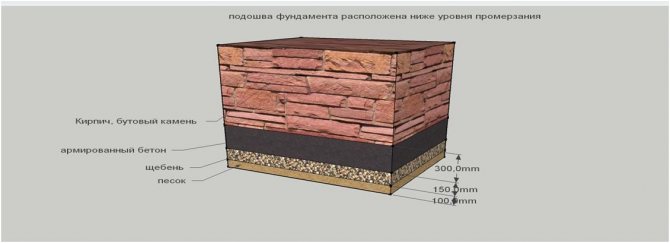 La densité du sol et le degré de son gel jouent un rôle important dans la détermination de la taille de la fondation. Le climat en Russie s'accompagne d'hivers assez rigoureux pratiquement sur tout son territoire. Par conséquent, les fondations du four doivent être posées sur toute la profondeur de gel du sol.