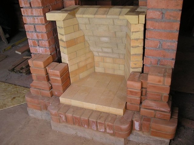 La finition avec des briques en argile réfractaire se produit selon le schéma - le long de tous les murs avec un espace, en tenant compte de l'expansion des matériaux