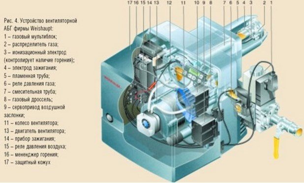 Dans un brûleur à gaz, le processus de mélange de gaz avec de l'oxygène a lieu; il contient une unité de commande pour le processus de combustion du carburant. Avec lui, vous pouvez régler un certain mode, ajusté au niveau de température requis pour le chauffage. Les chaudières et les poêles ont souvent les mêmes modèles de brûleurs.