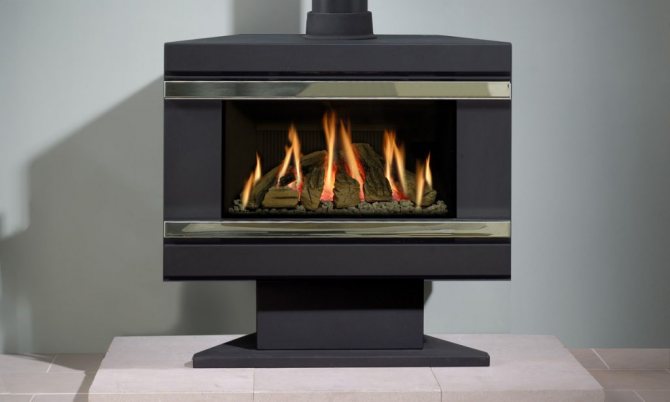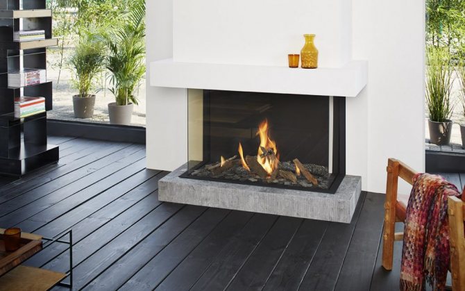 - Les cheminées au sol pour la maison au gaz sans cheminée - elles ressemblent à une cheminée d'îlot ordinaire.