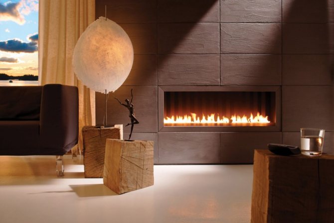 Il existe des foyers de différentes tailles et apparences, c.-à-d. design, afin que chacun puisse choisir l'option la plus appropriée pour le style intérieur de la chambre de combustion pour un foyer au gaz.