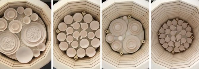 Lors de la pose de vos œuvres, vous devez observer leur disposition selon le schéma "pyramidal": les objets doivent être situés en bas avec la plus grande taille, puis plus haut avec une diminution progressive. Le poids est également important: les articles les plus lourds doivent être en bas. À ce stade, vous ne pouvez pas avoir peur qu'ils puissent se coller les uns aux autres - n'hésitez pas à les poser les uns sur les autres. Nous fermons le four.