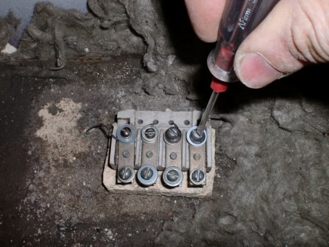 En haut, nous installons une plaque en céramique, qui doit être fixée et les extrémités du fil doivent y être boulonnées.
