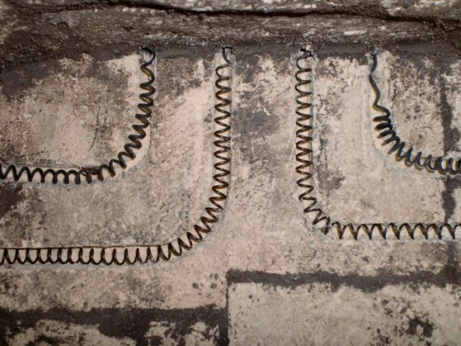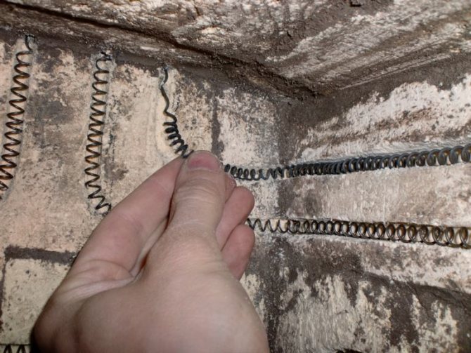 Eh bien, alors des rainures doivent être faites dans la brique, il est plus pratique de le faire avec un appareil tel que celui de l'auteur. Il faut travailler en protection respiratoire, car le travail génère beaucoup de poussière. Vous pouvez utiliser un fichier pour affiner les canaux. La largeur est choisie en fonction du diamètre de la spirale, mais la forme du labyrinthe est perceptible sur la photo. Enfin, pour que le poêle ne s'effondre pas, il est assemblé avec des pinces métalliques à l'aide d'un tournevis.