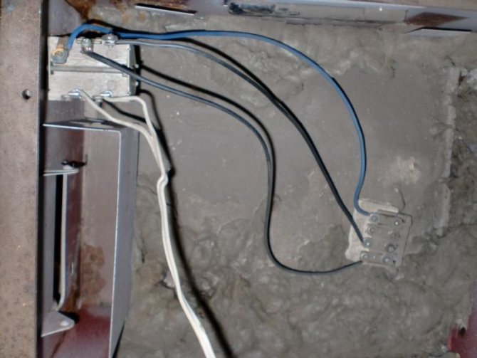 La brique n'a pas besoin d'être attachée à la porte. Lors de la cuisson, il peut être placé directement dans le moufle, devant la porte. Étape suivante installation - connecter le four au réseau électrique... Pour cela, vous aurez besoin de: