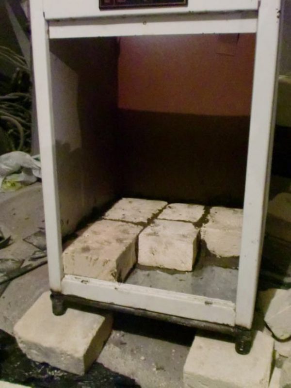 Nous récupérons le fond du four (je ne voulais pas, mais la brique doit être mouillée)