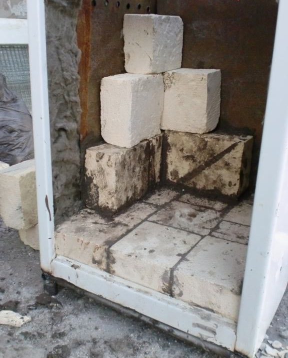 Lors de la pose d'un moufle en brique réfractaire un mélange de mortier ou de chamotte-sable n'est pas toujours utilisé... Au lieu de cela, les artisans amateurs utilisent le mélange argile-sable habituel. En conséquence, déjà pendant le séchage à froid dans la maçonnerie des fissures apparaissent... Au premier démarrage du four, les fissures augmentent. Résoudre le problème, le moufle est démonté et les briques sont placées sur le mortier en argile réfractaire.