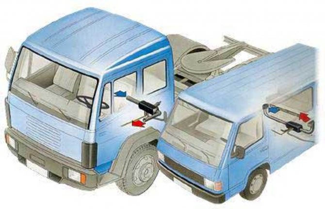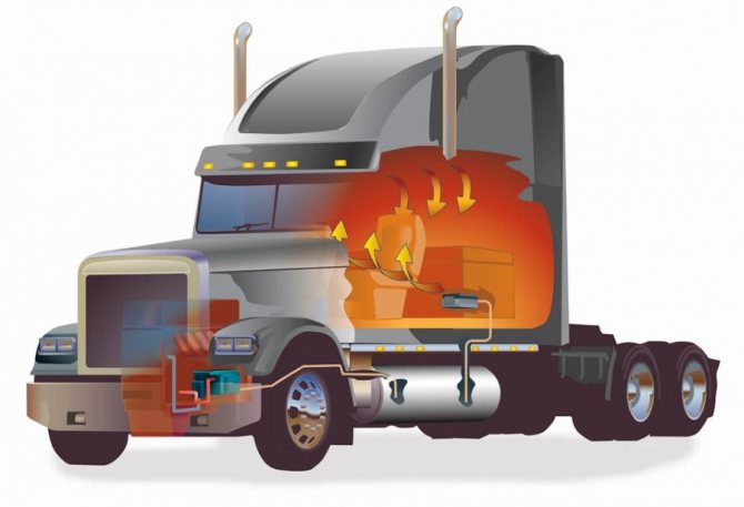 - Si vous connectez les tuyaux de sortie d'air, l'air chaud peut être dirigé non seulement dans la cabine, mais également dans l'habitacle de l'autobus ou dans le compartiment à bagages si la marchandise transportée nécessite un certain régime de température.