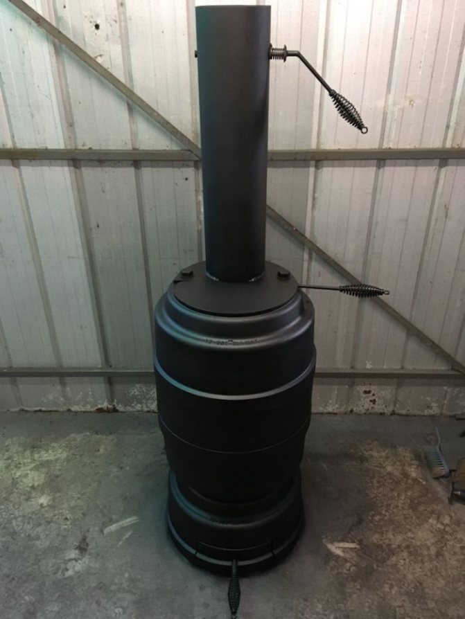 Le four à disque fini est compact, il ne prend pas beaucoup de place et, si nécessaire, peut être déplacé ailleurs. L'appareil est utilisé non seulement pour la cuisson, mais également comme appareil de chauffage, car les parois de l'appareil dégagent bien de la chaleur. Le poêle peut être alimenté au bois, au charbon, au biocarburant.