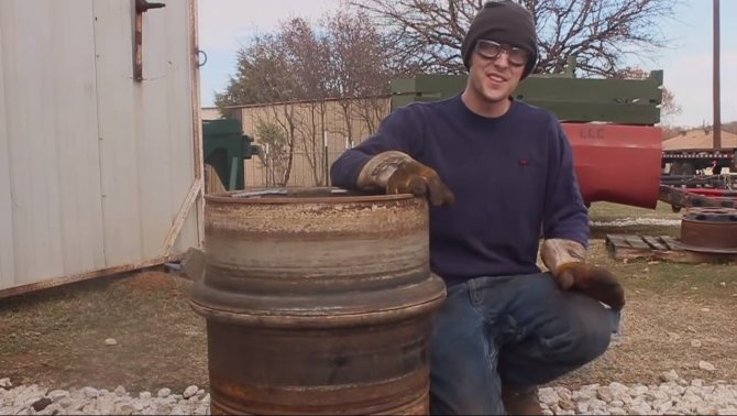 - Jante de roue standard 8.5-20 des tracteurs basés sur KRAZ 65101. La forme pratique de la jante nécessitera un minimum de modifications et l'épaisseur de la paroi de 11 mm rendra le poêle dans le sauna éternel, même s'il est chauffé au charbon;