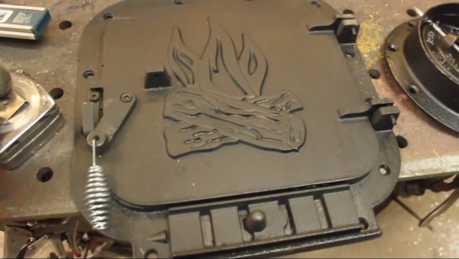 Sur une note! Pour une utilisation confortable, il est conseillé d'équiper la porte d'une poignée constituée d'un seul grand pêne. Et pour que le bois de chauffage ou le charbon ne tombent pas accidentellement - également avec un loquet d'une plaque de métal étroite et une petite boucle.