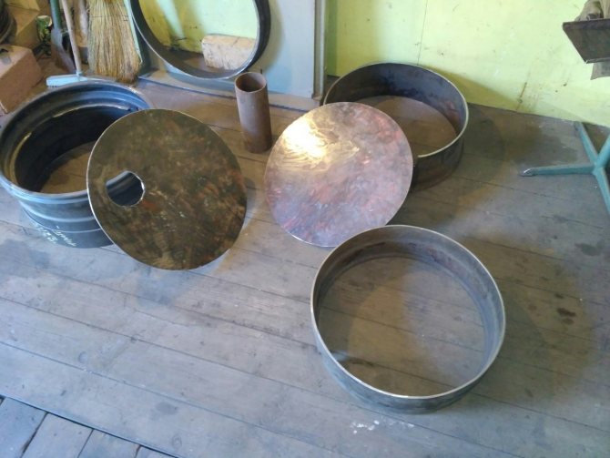 Pour monter la coque, vous aurez besoin de 4 disques d'un camion, par exemple, KrAZ. De telles roues feront un poêle d'un diamètre de 0,5 m et d'une épaisseur de paroi de 1 cm - cela suffit amplement pour chauffer un bain ou une autre pièce de service.
