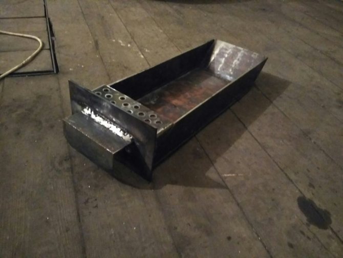 Après cela, un couvercle avec un trou pour installer un tuyau est découpé dans un métal de 4 mm et les côtés sont en métal plus mince afin que le four soit plus ou moins uniforme sans transitions brusques.