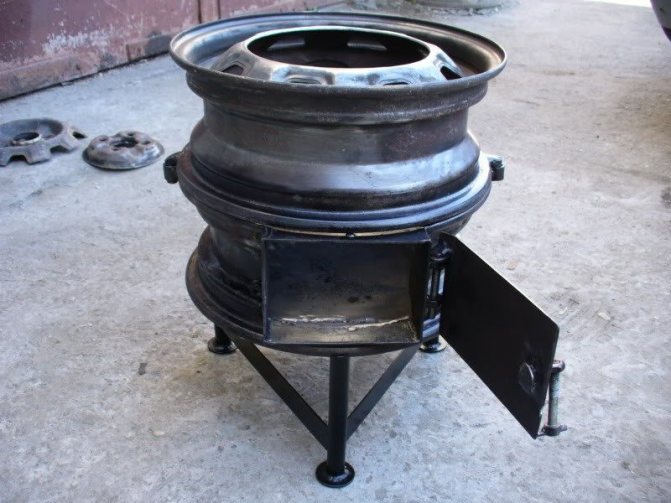 - Compacité. Vous pouvez utiliser des roues de n'importe quel diamètre de voitures différentes. Ce paramètre ouvre la possibilité d'assembler un four de dimensions optimales. La taille de l'appareil affectera la taille de la zone chauffée de la pièce.