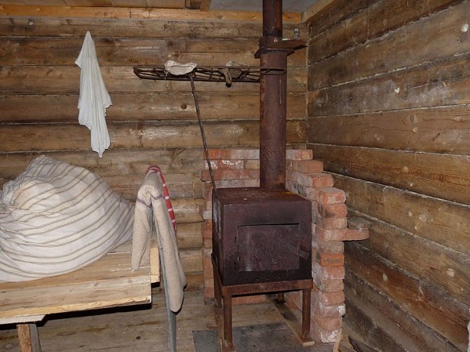 - les murs et le plafond autour du poêle sont en outre recouverts de tôles;