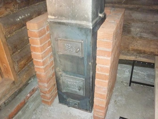 Noter. Seuls les poêles ventru carrés ou rectangulaires peuvent être maçonnés. Le four sous forme de cylindre nécessite un dispositif spécial pour la construction de l'enveloppe, sous forme de nervures métalliques latérales. Un boîtier en brique pour le cylindre réduira le transfert de chaleur et entraînera un épuisement rapide des murs.