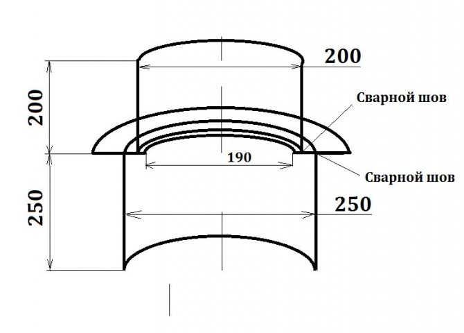Dans votre cas, je ferais ce qui suit: j'ai téléphoné aux entreprises engagées dans la production d'étain et j'ai commandé un tuyau F180 avec évasement d'un côté à F184, la longueur de l'évasement est de 15 à 20 centimètres. Après cela, ce tuyau est placé sur le tuyau en amiante et fixé avec des vis autotaraudeuses. Pour la complaisance dans la fiabilité de la fixation, vous pouvez mettre des vergetures. Utilisez des tuyaux Ф135 ailleurs, par exemple dans un bain. Parce que même un sandwich avec son aide ne sert à rien (ce n'est pas un acier inoxydable, il y a une grosse différence avec le diamètre intérieur). Je ne recommande pas de les mettre dans des tuyaux en amiante, en les enveloppant de fibre d'amiante. des opérations similaires sont menées sur le terrain. Sinon, "la morve" se révélera, et la morve et le monoxyde de carbone dans la pièce sont un RISQUE.