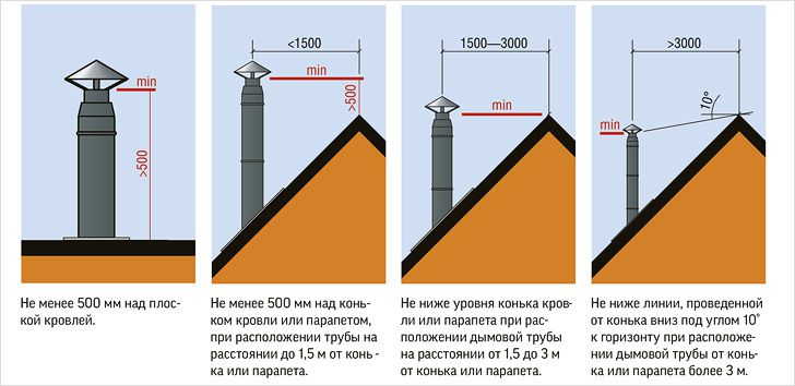 Faites attention à l'image, si votre tuyau de cheminée est situé en dessous des lignes pointillées, alors le tuyau doit être allongé.