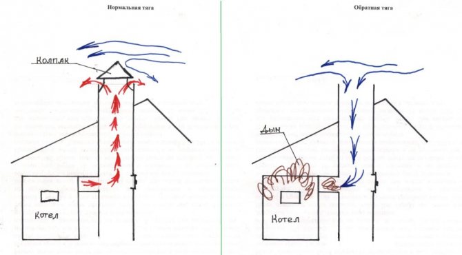 Lorsqu'une mine de briques comporte plusieurs canaux, par exemple d'une chaudière à gaz, un canal de ventilation d'une chaufferie, des canaux de ventilation d'une cuisine et d'une salle de bain, des flux d'air chaud et humide se mélangent et se déposent sur la surface intérieure d'un parapluie commun, tournant dans les glaçons et les accumulations de glace.