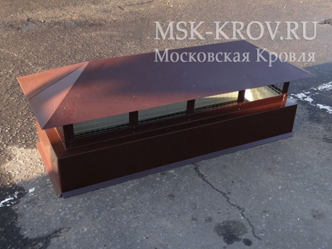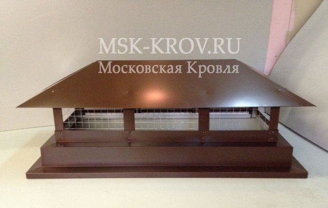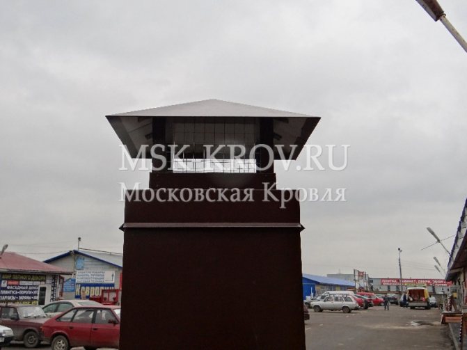 - Si seuls des conduits d'air en plastique sont amenés sur le toit, vous pouvez construire un cadre et le coudre à l'extérieur avec du métal avec une isolation préliminaire. Une telle construction sera avoir l'air plus respectable tuyaux en plastique simples.