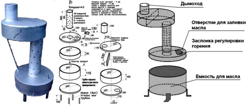 Les problèmes de combustion de l'huile doivent être pris en compte lors de la fabrication du four. Avec un réservoir plus grand, le carburant brûle plus rapidement. Pour éviter l'ébullition, on utilise de l'huile, qui est restée un certain temps.