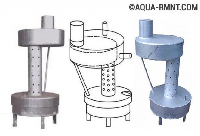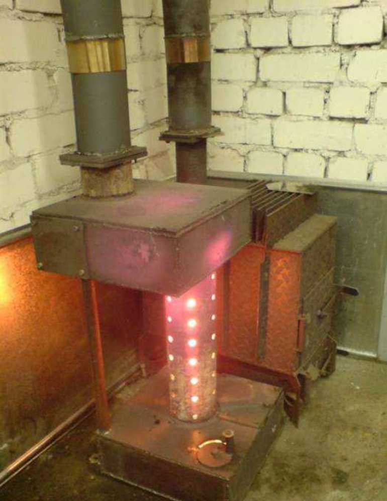 La partie inférieure du bâtiment est un poêle à bois traditionnel avec grilles, cendrier et cheminée. Un réservoir supplémentaire est en outre installé sur le dessus, où du carburant liquide sera versé. La chambre inférieure est reliée à la chambre de combustion secondaire. Pour cela, vous pouvez utiliser un tuyau conventionnel avec des trous pour l'alimentation en air, ensuite connecté à la cheminée.