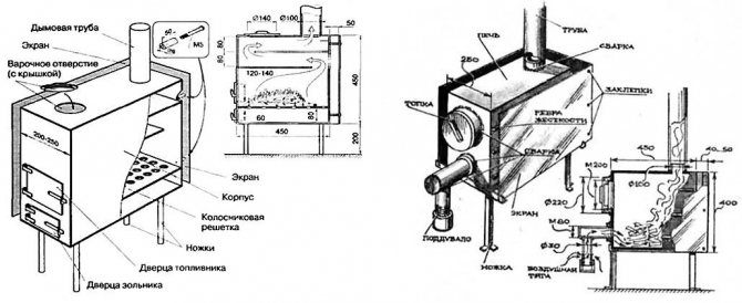 Aujourd'hui, les poêles à ventre faits maison destinés à brûler les mines sont construits principalement selon deux schémas: