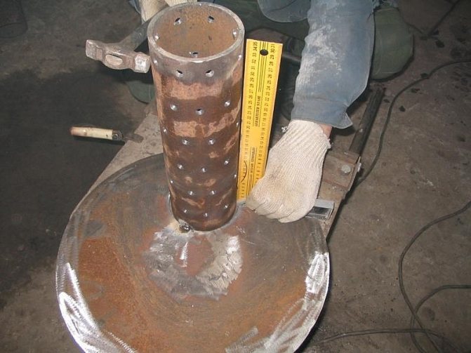 Soudez le tuyau sur le dessus du couvercle. Un manchon est constitué d'un tuyau d'un diamètre de 10 cm, qui relie le bol au brûleur.