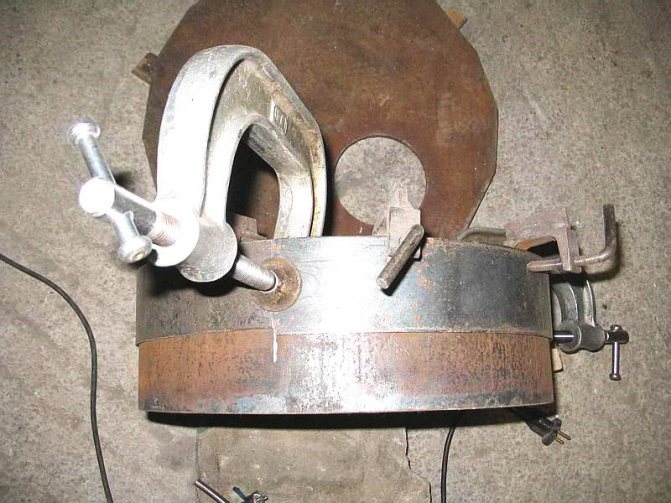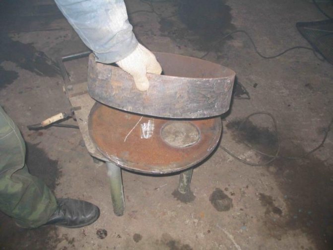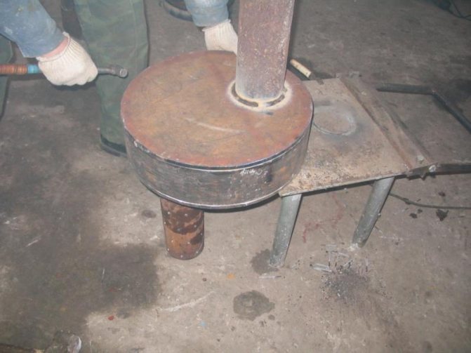 Un cercle préalablement coupé est placé sur le brûleur, le plaçant exactement au milieu et soudé. La structure est placée à l'intérieur du poêle et une soudure est faite autour de la circonférence du cylindre.