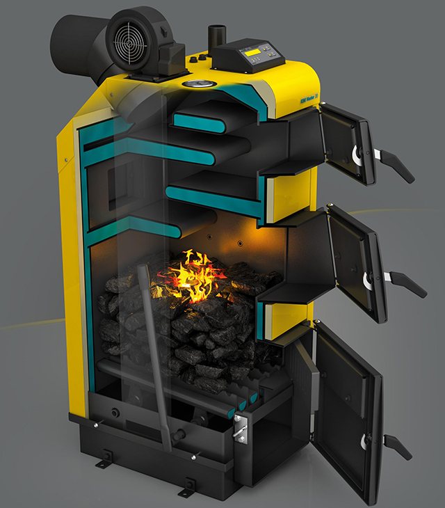 Les chaudières à charbon modernes sont équipées d'une unité de commande électronique et d'un système d'automatisation qui rend le fonctionnement du chauffage sûr et efficace.