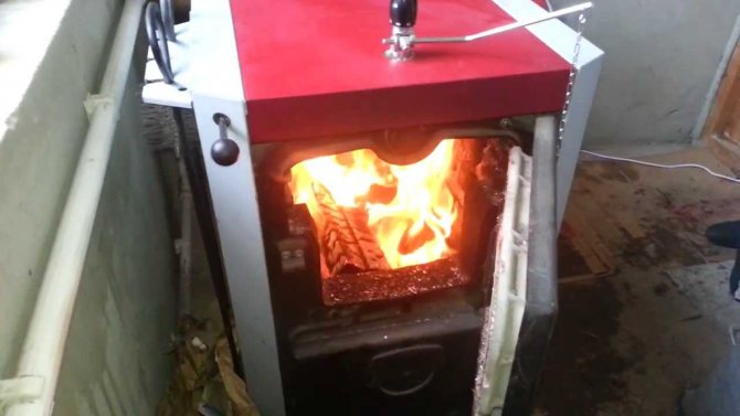 - brûler par le haut... La chambre de combustion à volume accru a une forme allongée vers le haut. Le carburant est enflammé par le haut, l'air est fourni strictement à la zone de combustion. Pour cette raison, la charge de combustible est brûlée plus longtemps que dans une chaudière à combustion directe;