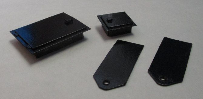Au départ, je voulais fraiser le four et la porte de nettoyage en duralumin, et couper les vannes de vue en étain. Puis il a changé d'avis et a rapidement assemblé et collé ces pièces en carton. Il est beaucoup plus facile et plus rapide de s'adapter aux dimensions et à l'apparence en utilisant cette technologie. Nous couvrons tout avec de la peinture brillante à partir d'une bombe aérosol, attendons le séchage - nous obtenons les produits dont nous avons besoin.