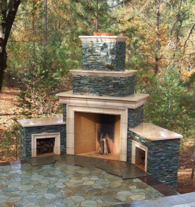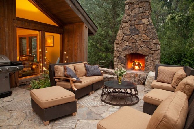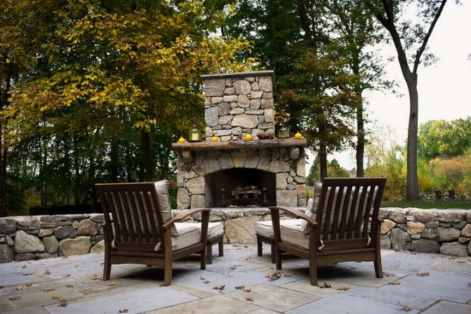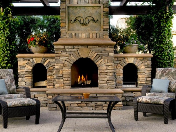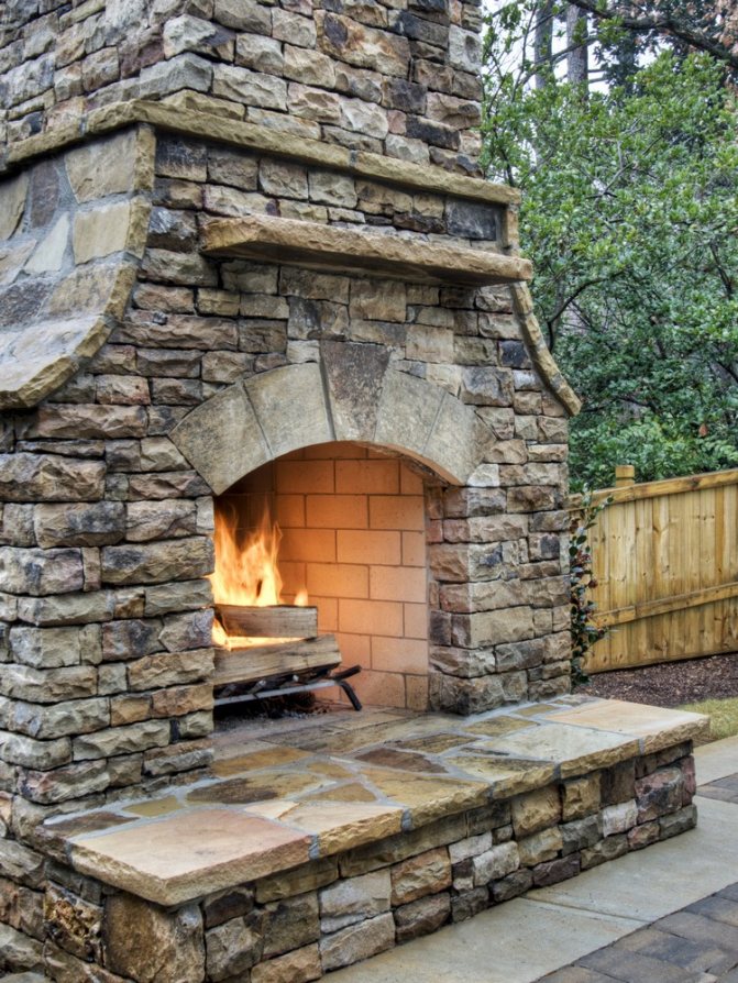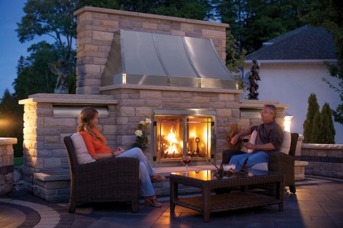 - Cheminée classique. Il a gagné son nom en raison de sa forme extérieure. C'est un foyer de rue entouré d'un portail en pierre ou en brique. En fait, la pierre peut être juste une finition décorative, et la chambre de combustion a des fonctions étendues de barbecue, barbecue, gril.