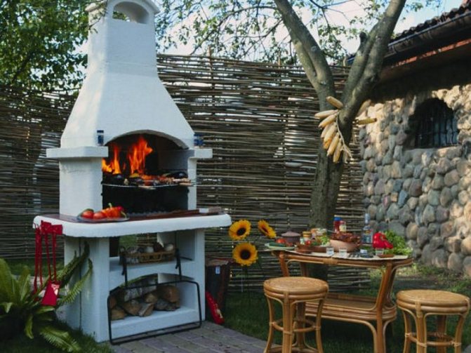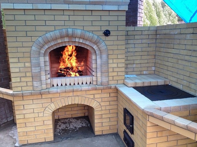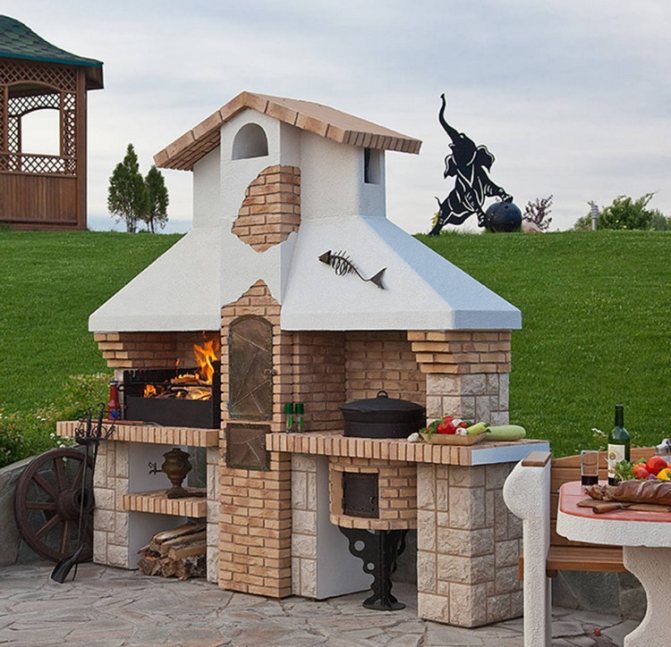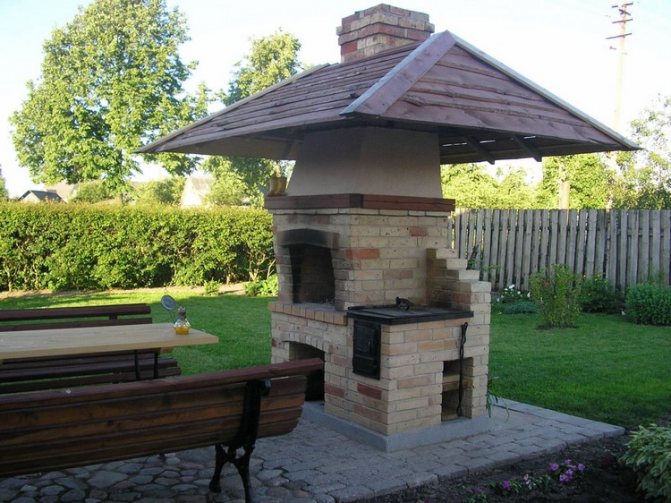 C'est une sorte de poêle russe à échelle réduite. Convient à toutes sortes de plats. Il a la capacité de faire frire, cuire, cuire au four, mijoter et même fumer. Il est important que pour fumer, vous devrez laisser plusieurs charbons dans la chambre de combustion, en les saupoudrant de sciure sèche. Une bonne option de foyer extérieur pour ceux qui aiment cuisiner sur un feu.