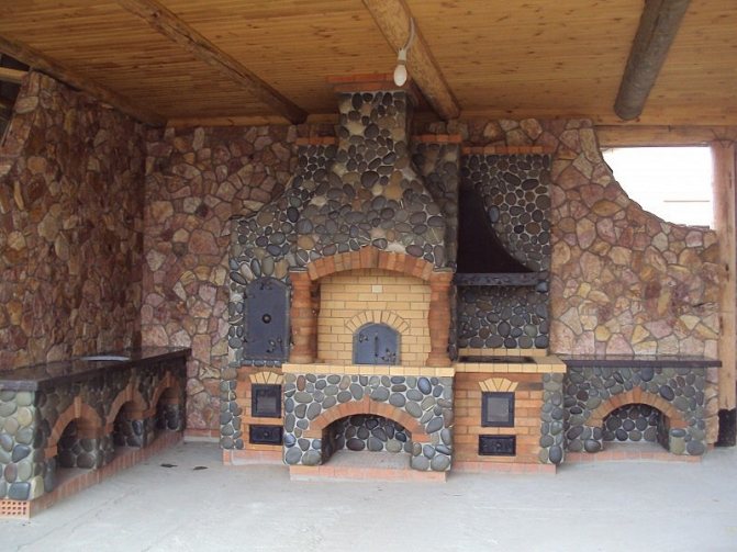 Son apparence ressemble à un poêle russe ordinaire, mais il est situé non pas dans la maison, mais dans la rue à l'extérieur. Il ne différera que par le fait qu'il a des parois latérales isolées, ce qui réduit la consommation de bois de chauffage pendant la cuisson. De plus, le four conserve bien la chaleur, vous pouvez donc y cuisiner divers plats, du barbecue à la soupe maison.