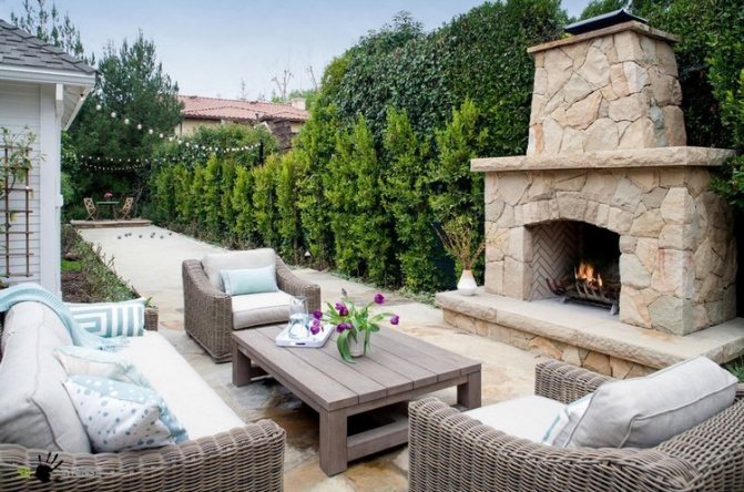 Pour construire un foyer extérieur de vos propres mains, vous devez déterminer le lieu de son installation. Il ne peut être choisi arbitrairement, car un appareil en état de marche doit non seulement être fonctionnel, mais également sûr.