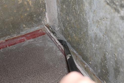 - Si la surface est loin d'être uniforme, il y a des défauts rugueux, un nettoyage préliminaire avec enlèvement de l'ancien revêtement, un séchage, un apprêt et un plâtrage avec nivellement de la zone de travail est nécessaire.