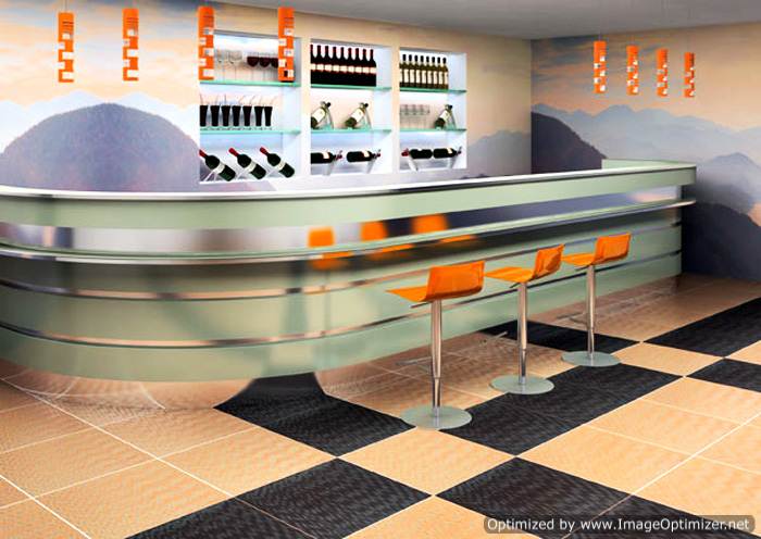 - Dans les ateliers à haut risque de glissement, des carreaux avec une surface antidérapante doivent être installés. Ces matériaux ont des pointes et des rainures.