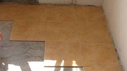 Nous posons les carreaux sur le sol.