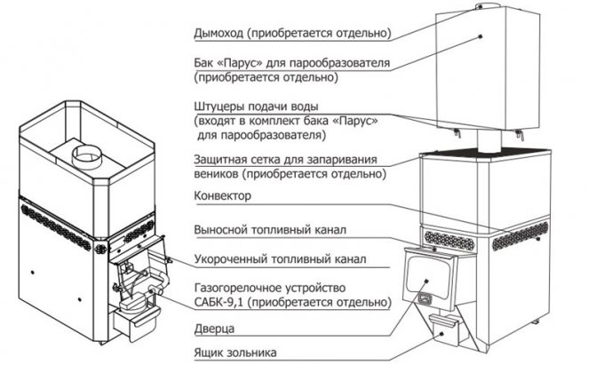 Ce produit est bien connu des professionnels et des vrais amoureux d'un vrai bain. Les concepteurs ont réussi à augmenter considérablement les sections convectives, ce qui a fortement réduit le temps de chauffage à 100 ° (jusqu'à une demi-heure).