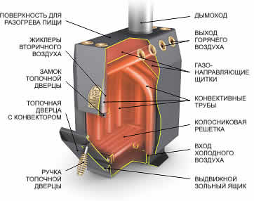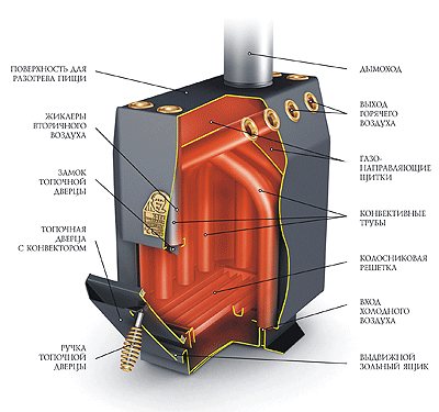 Le four comprend des tuyaux de convection, qui sont installés selon le schéma. Contrairement à ses homologues, le poêle de Butakov a un transfert de chaleur élevé.