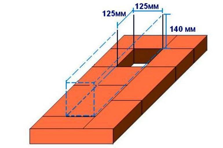 - Nous appliquons une brique sans mortier et déterminons la partie qui se trouve à l'intérieur du canal de la cheminée aux révolutions.