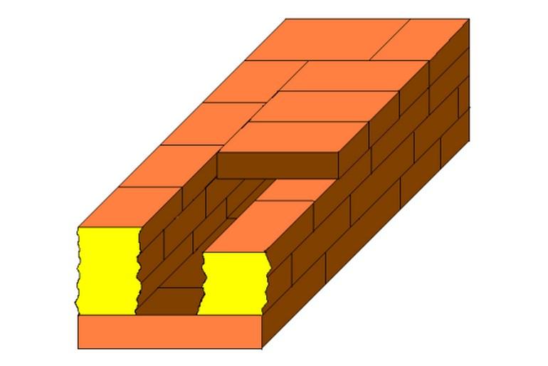 - Pour ce faire, nous posons deux rangées de briques de manière à obtenir un canal de cheminée horizontal. La figure montre comment procéder. Les briques sont posées de la manière habituelle pour la maçonnerie.