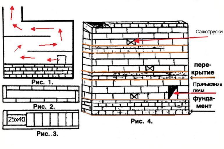 Dans une telle cheminée, le problème de la suie se posera sûrement. Le principal inconvénient d'une telle cheminée est la nécessité d'un grand nombre de portes pour le nettoyage (Comment nettoyer une cheminée).