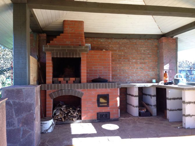 Le plan comprend également un arrangement de cheminée sur presque tous les projets de barbecue en brique. Mais il est conseillé de le faire après que la structure finie soit complètement sèche. Le moyen de sortir de la situation quand il n'y a pas de temps et de matériel supplémentaire est de construire un cadre à partir de renforts et de planches. Il s'agit d'une sorte de coffrage dans lequel du béton est coulé. C'est moins cher et plus rapide de cette façon.