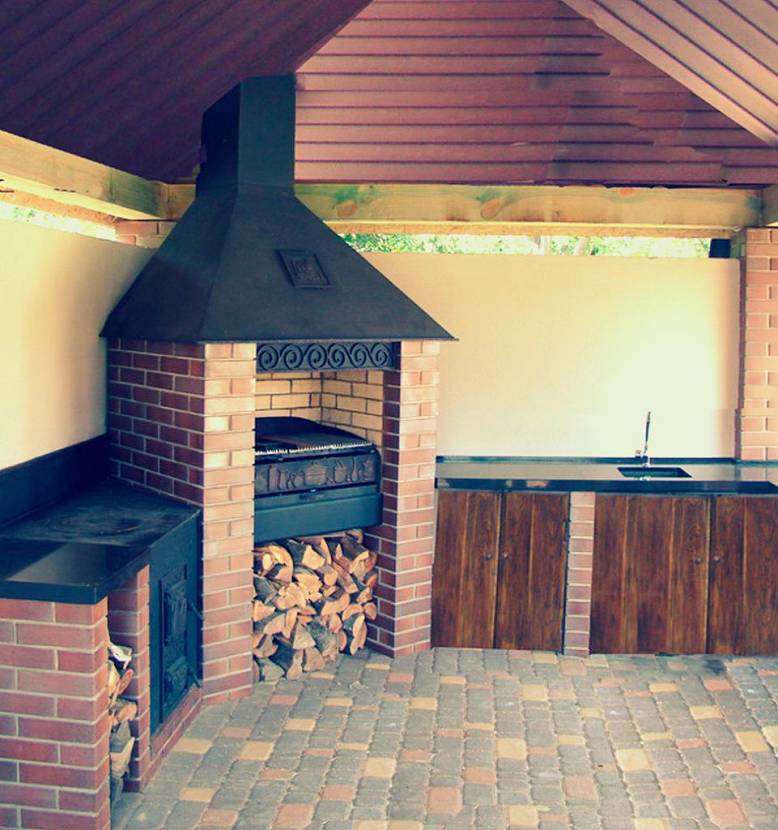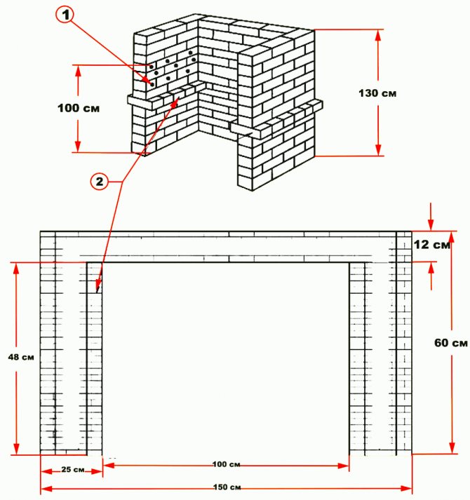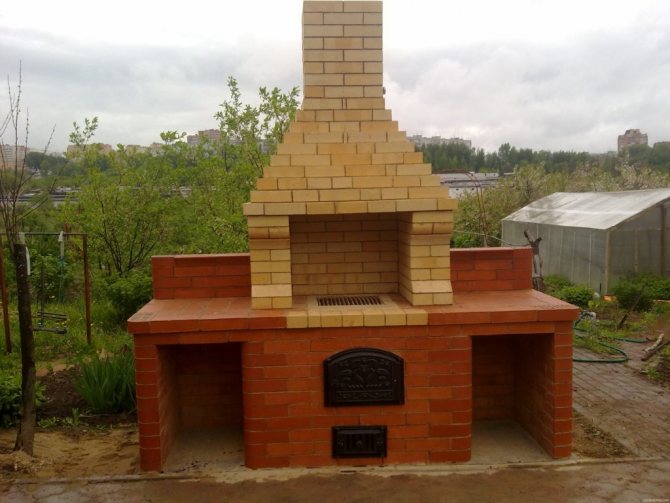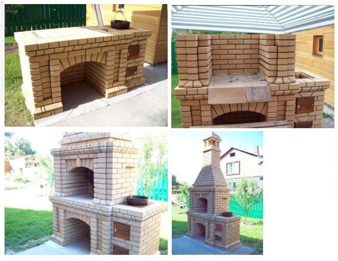 Bien que les rebords en brique puissent être contournés en les remplaçant par des coins en acier ou d'autres fixations. Il est important que ce moment ait été pensé au moment de la pose de barbecues de rue, alors vous pouvez le faire vous-même de manière fiable, en comptant sur l'espace pour un fumoir ou des compartiments supplémentaires.