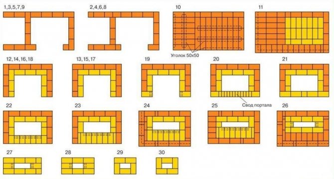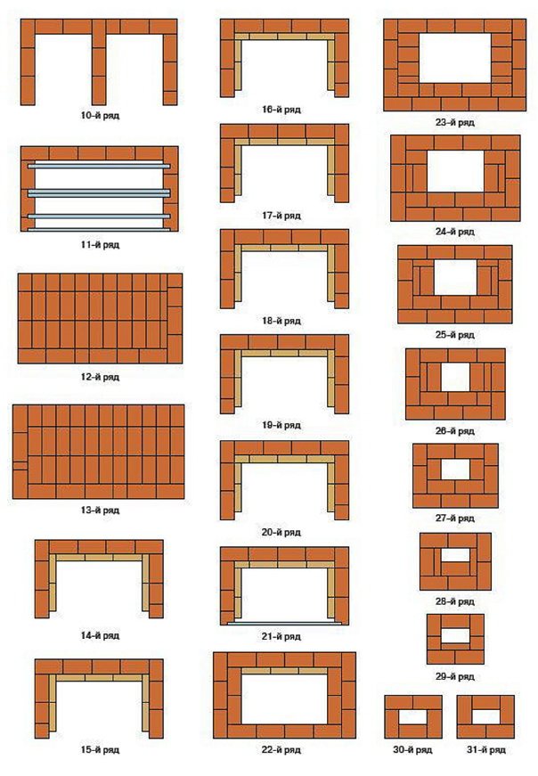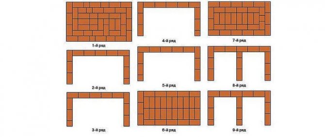 Continuez les 3-4 rangées suivantes dans une demi-brique, en conservant l'épaisseur d'origine. Et à partir de la dixième rangée, il est nécessaire de répéter la commande du four à barbecue, dans l'attente d'une pose transversale répétée pour les grilles.