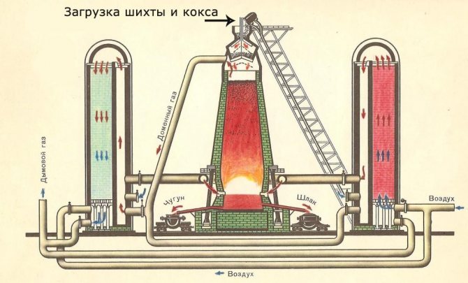 Haut fourneau - un dispositif pour la production de fonte brute en réduisant la fusion de minerais de fer ou de concentrés.