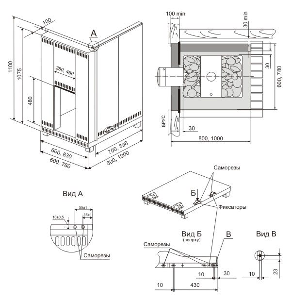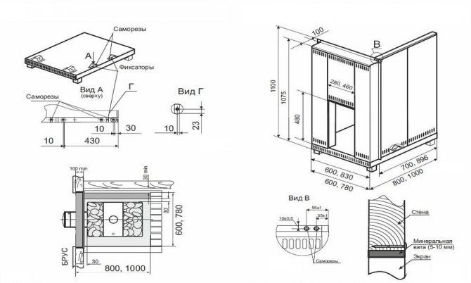 - L'écart entre les murs en bois de la pièce (hammam) et le poêle revêtu d'au moins 10-15 cm garantira la sécurité incendie.